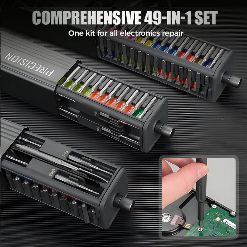 🔩 49 Precision Bits in One Set: Designed to fit 99% of common screw types worldwide – perfect for electronics, appliances, and DIY projects