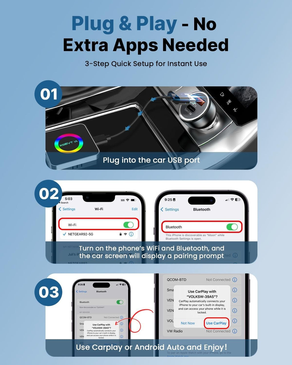 π CarPlay to Androids: Use full Android functions directly on your car screen without limitations.